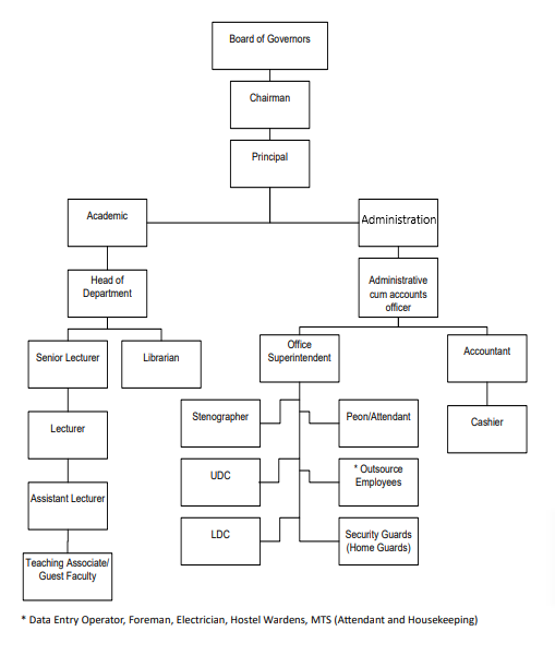 The routine academic and administrative decisions are taken by the Principal in consultation with the Departmental In Charges & Administrative Officer of the Institute. The general superintendence, direction, and control to the affairs of the society and its income and property are vested with the Board. The power of the decision may be delegated to the Departmental In charges & Administrative Officer from time to time. The routine academic and administration decisions are taken by the Principal as per rules provided by National Council and Government of India, in consultation with departmental in charges. The power for making decision may be delegated from time to time | |